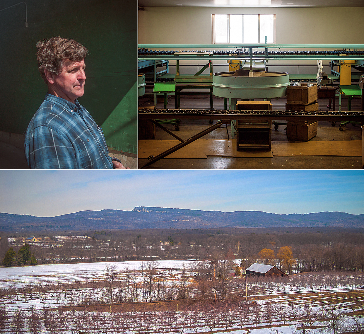 Clockwise from Top Left: Rod Dressel Jr. The sorting line on a rare day off. A winter’s view of the “Gunks.”
