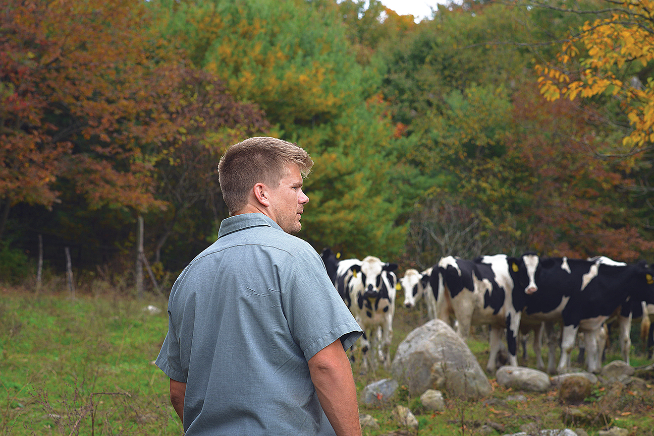 Seth out in the pasture monitoring the herd. Seth out in the pasture monitoring the herd. Dairy Farmer with cows – Five Acre Farms