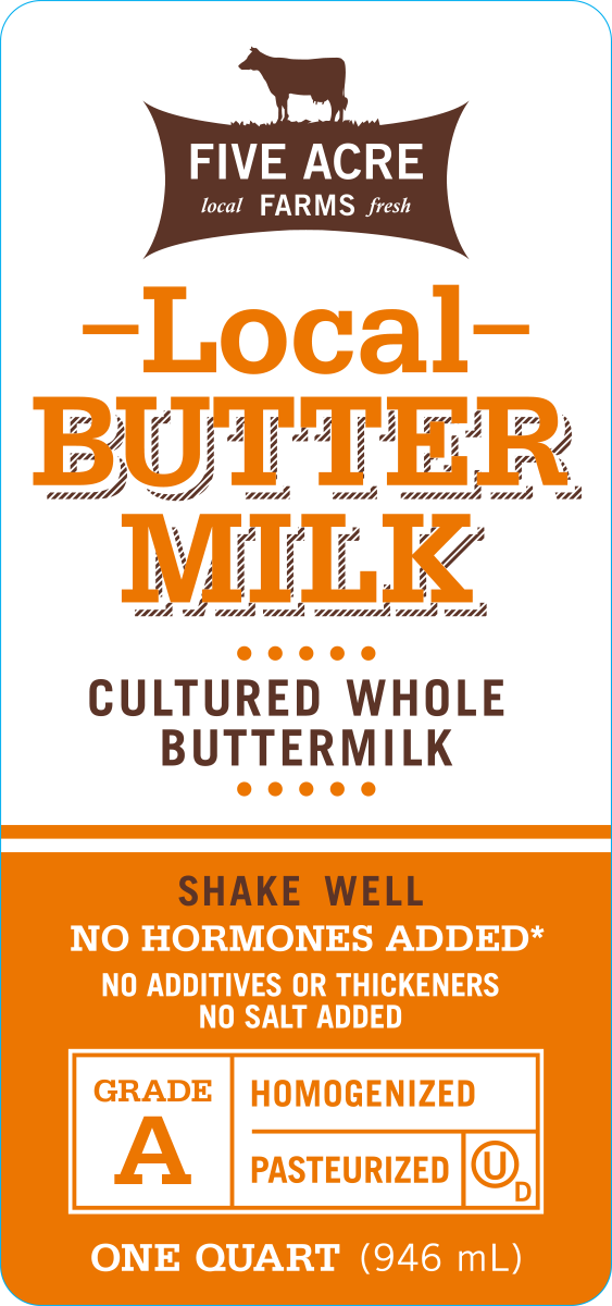 Remarkably creamy with a fresh, tangy flavor, our Local Whole Milk Buttermilk is a healthy drink on its own and great for baking and cooking. To make it, we start with the best local whole milk and add four live and active cultures: lactococcus lactis subsp. lactis, lactococcus lactis subsp. cremoris, lactococcus lactis subsp. lactis biovar. diacetylactis and leuconostoc mesenteroides subsp. cremoris. Our buttermilk is unsalted, pasteurized, and homogenized.